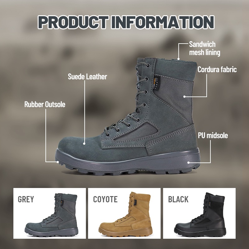 Эти ветрозащитные и противоскользящие тактические ботинки для пустыни с защитой от песка доступны для индивидуальной настройки цветов, материалов и деталей. Минимальный заказ составляет 800 пар, что идеально подходит для сотрудничества с брендами и групповых закупок. И эти ботинки для пустыни имеют следующие преимущества: